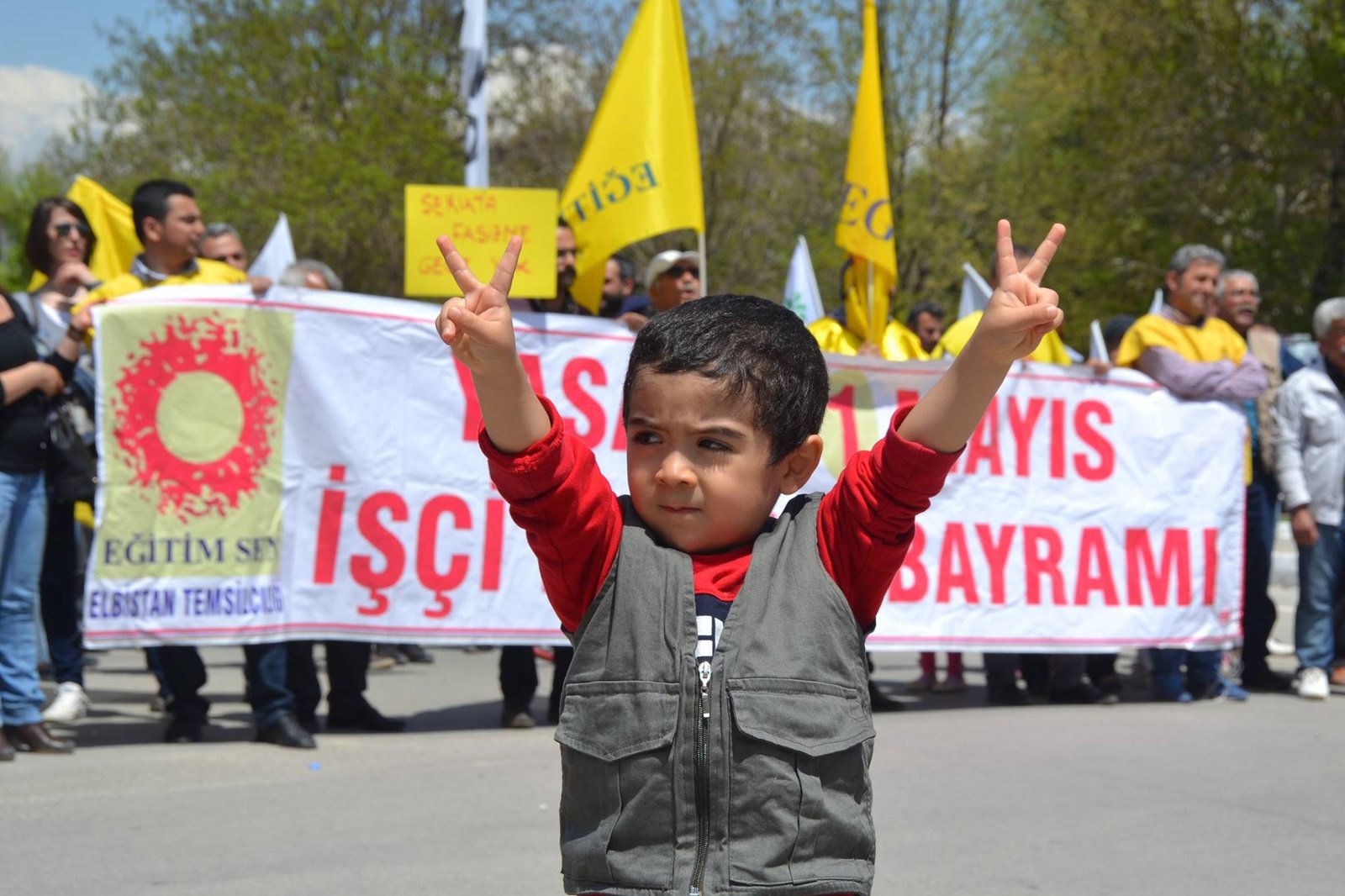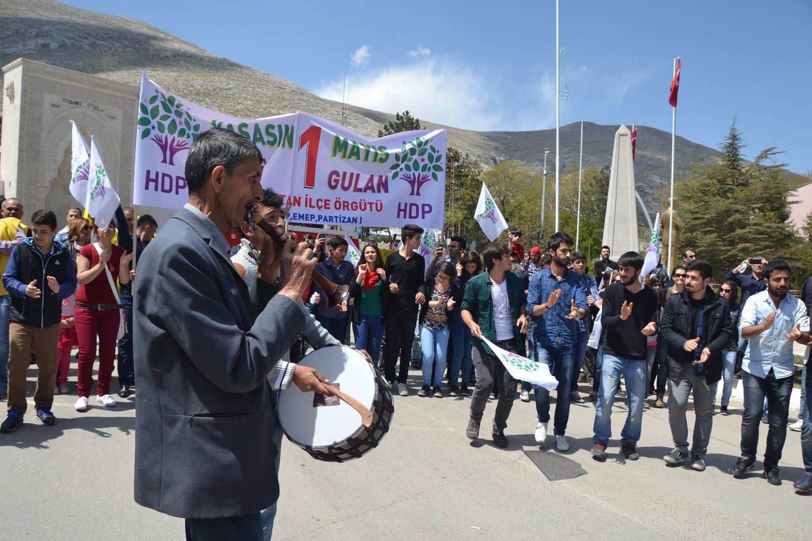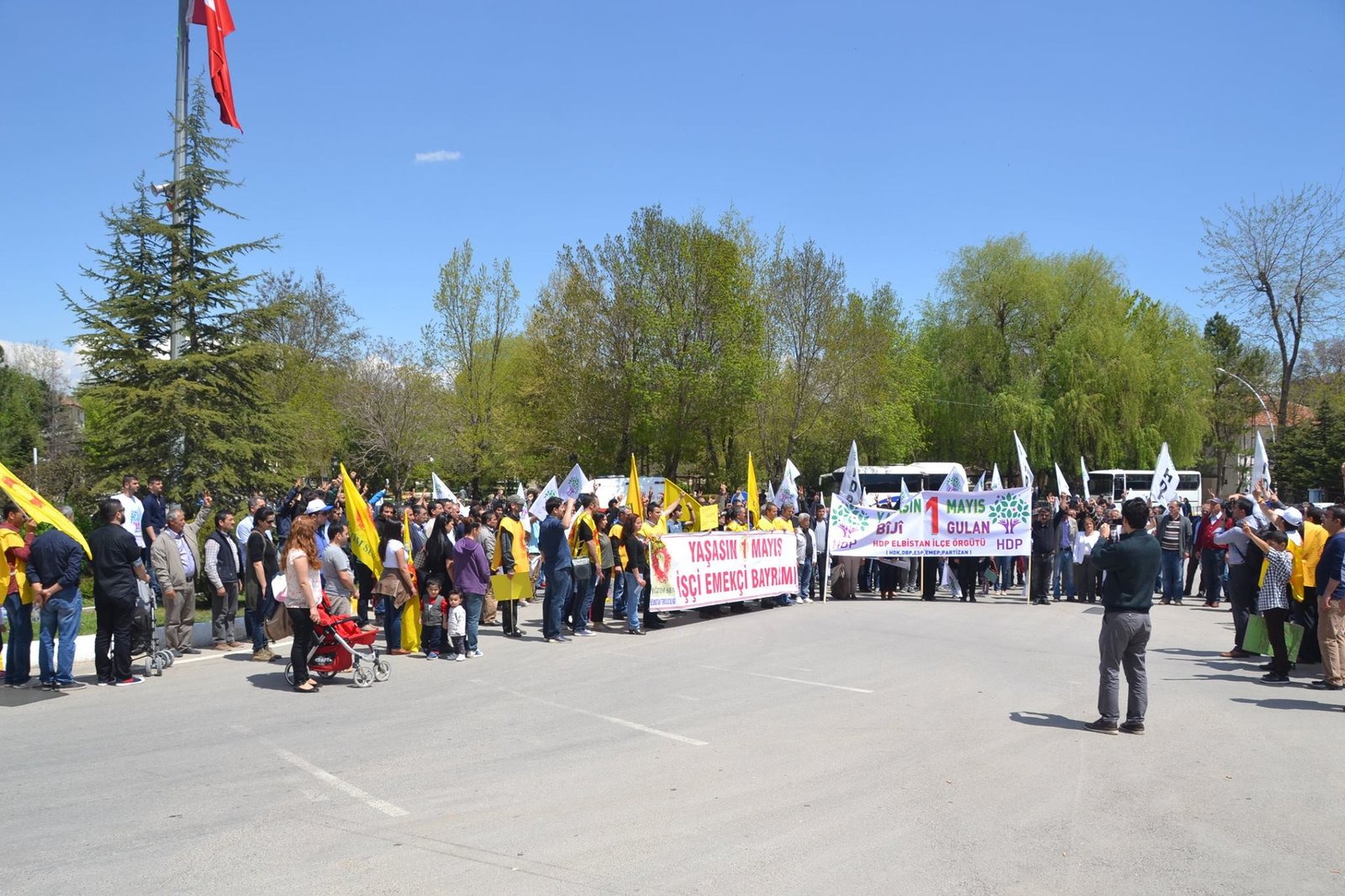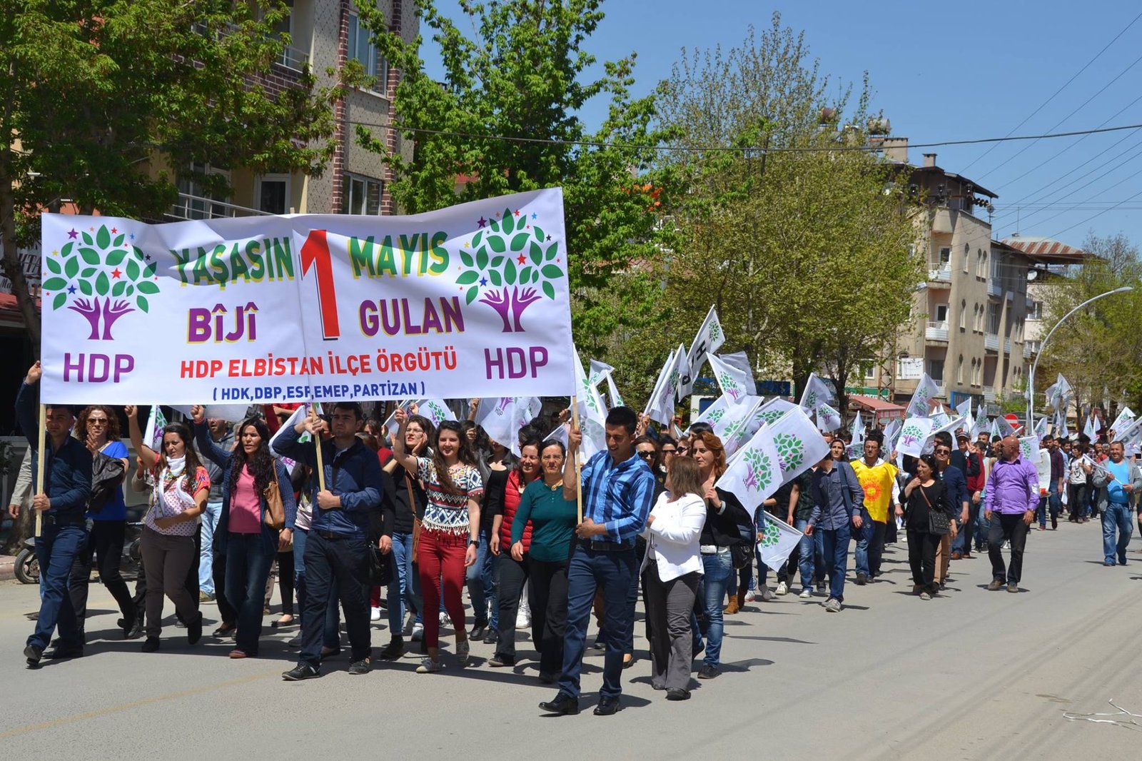 HDP Elbistan ilçe örgütü, Eğitim-Sen ve Ses öncülüğünde, Malatya caddesi üzerinde bir araya gelen partililer,işçiler ve emekçiler Ahmet Karacabey caddesi boyunca zılgıtlarla, alkışlarla ve ‘yaşasın bir mayıs, bîjî yek gulan, selam selam işçilere bin selam’ sloganları eşliğinde yürüyüp, Cumhuriyet meydanın vardı.